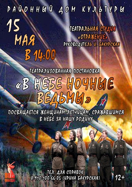 15 мая в 14.00 в зале Районного Дома культуры состоится премьера патриотической постановки «В небе ночные ведьмы».