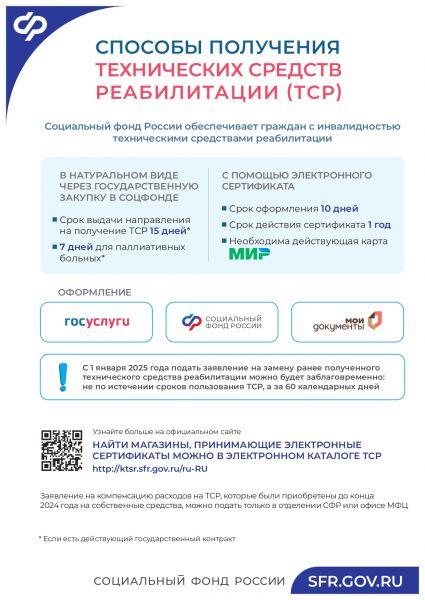 — возможность приобретения технического средства реабилитации (далее – ТСР) без использования собственных средств, возможность приобретения во многих торговых точках, в том числе онлайн-магазине (по России);