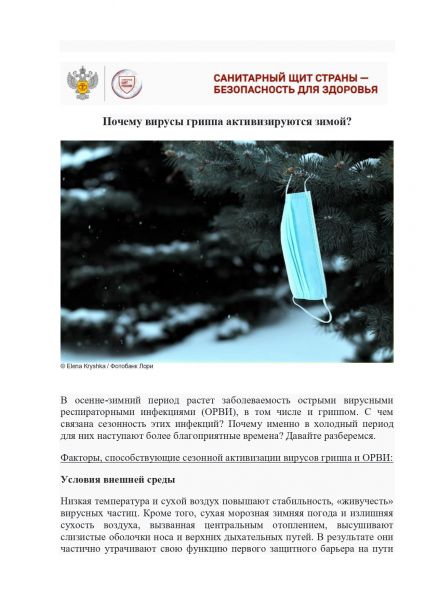 Вашему вниманию информационный материал «Почему вирусы гриппа активизируются зимой?».