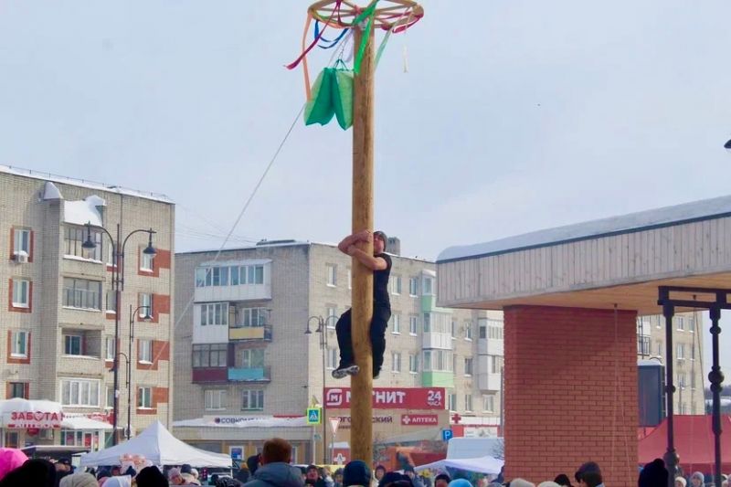 И конечно же захватывающее покорение масленичного столба, где за ценные призы боролись самые отважные и ловкие участники.